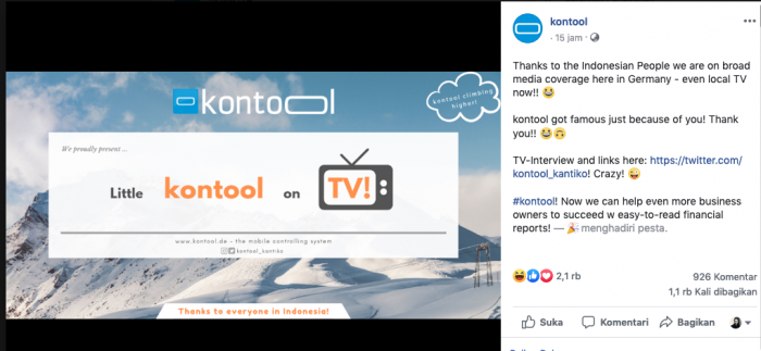 Cyberthreat.Id - Startup pajak dan keuangan asal Jerman, Kontool, mengucapkan terima kasih kepada netizen Indonesia. Pasalnya, setelah namanya ramai diperbincangkan, Kontool mendapat liputan dari televisi Jerman.