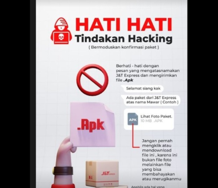 Nasabah mengaku kehilangan uang setelah diminta menginstal file Android Package Kit (APK) berkedok resi paket oleh seseorang yang mengaku kurir ekspedisi J&T Express. (Baca: Hilang Saldo Bank Usai Instal File APK ‘J&T Express’)