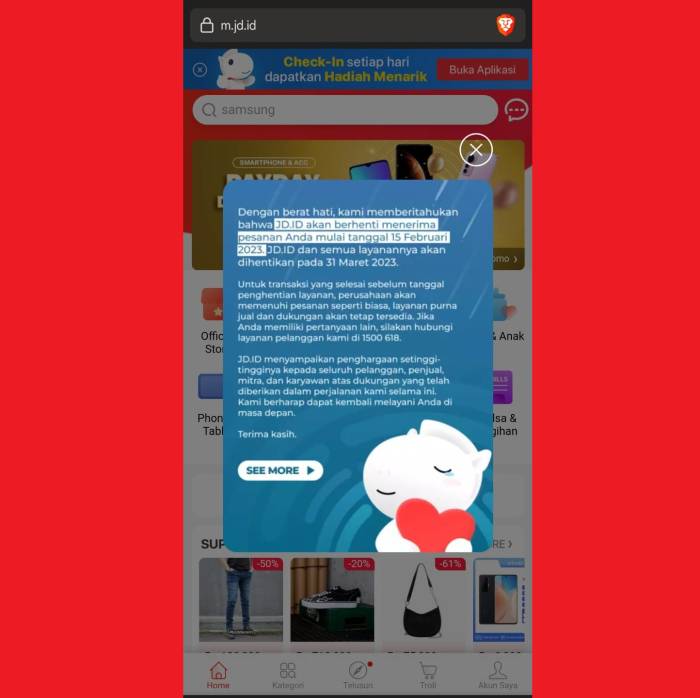 JD.ID tutup total layanan pada 31 Maret 2023.