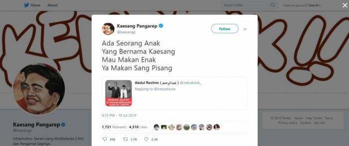 Sejumlah netizen pun memuji cara Kaesang menanggapi hujatan untuk bapaknya.