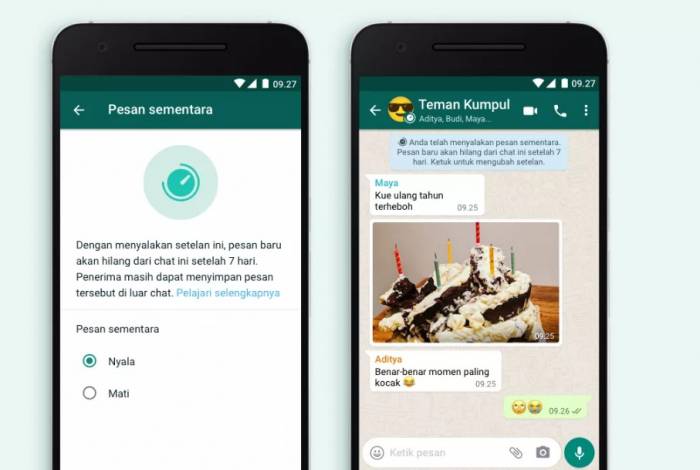 Pesan-pesan yang Anda dikirimkan atau diterima di layanan olah pesan WhatsApp kini bisa terhapus secara otomatis setelah tujuh hari.